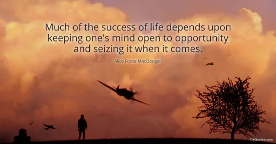 MacDougall, Alice Foote. "Much of the success of life depends upon keeping one's mind open to opportunity and seizing it when it comes." FixQuotes. January 16, 2026. https://fixquotes.com/quotes/much-of-the-success-of-life-depends-upon-keeping-100637/.