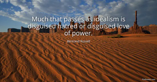 Russell, Bertrand. (2026, February 12). Much that passes as idealism is disguised hatred or disguised love of power. FixQuotes. https://fixquotes.com/quotes/much-that-passes-as-idealism-is-disguised-hatred-4934/