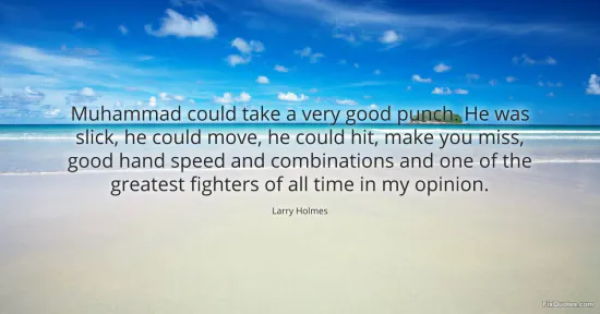 Holmes, Larry. (2026, January 16). Muhammad could take a very good punch. He was slick, he could move, he could hit, make you miss, good hand speed and combinations and one of the greatest fighters of all time in my opinion. FixQuotes. https://fixquotes.com/quotes/muhammad-could-take-a-very-good-punch-he-was-104235/