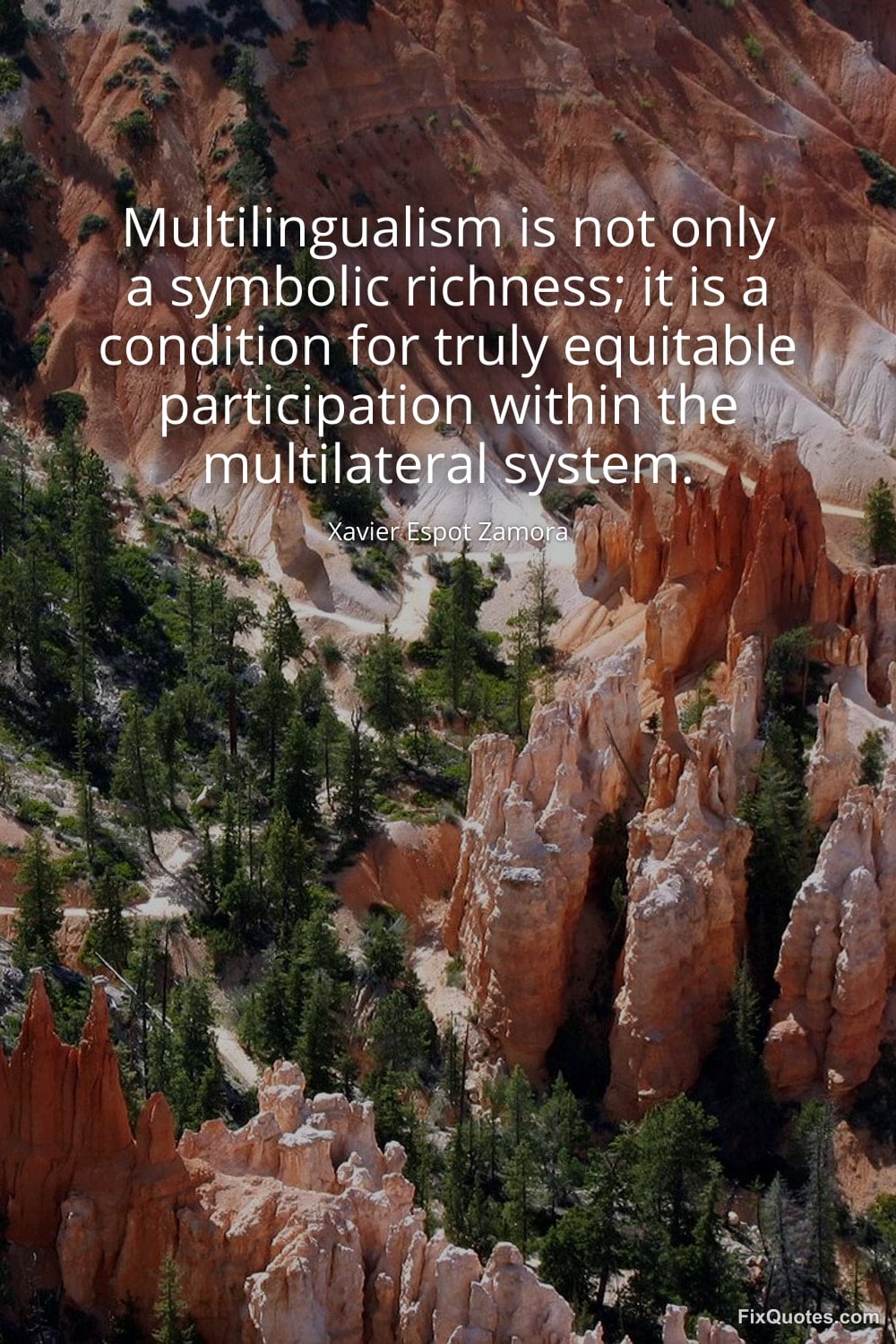 Zamora, Xavier Espot. (2026, February 15). Multilingualism is not only a symbolic richness; it is a condition for truly equitable participation within the multilateral system. FixQuotes. https://fixquotes.com/quotes/multilingualism-is-not-only-a-symbolic-richness-185352/