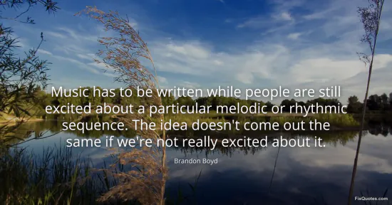 Boyd, Brandon. "Music has to be written while people are still excited about a particular melodic or rhythmic sequence. The idea doesn't come out the same if we're not really excited about it." FixQuotes. January 16, 2026. https://fixquotes.com/quotes/music-has-to-be-written-while-people-are-still-111346/.