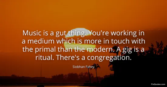 Fahey, Siobhan. (2026, January 17). Music is a gut thing. You're working in a medium which is more in touch with the primal than the modern. A gig is a ritual. There's a congregation. FixQuotes. https://fixquotes.com/quotes/music-is-a-gut-thing-youre-working-in-a-medium-75780/