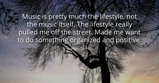 Thomas, Brandon. (2026, January 15). Music is pretty much the lifestyle, not the music itself. The lifestyle really pulled me off the street. Made me want to do something organized and positive. FixQuotes. https://fixquotes.com/quotes/music-is-pretty-much-the-lifestyle-not-the-music-162878/