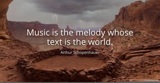 | Source | The World as Will and Representation (Die Welt als Wille und Vorstellung) — Schopenhauer; contains the line often quoted in English as "Music is the melody whose text is the world" (German: "Musik ist die Melodie, deren Text die Welt ist"). |