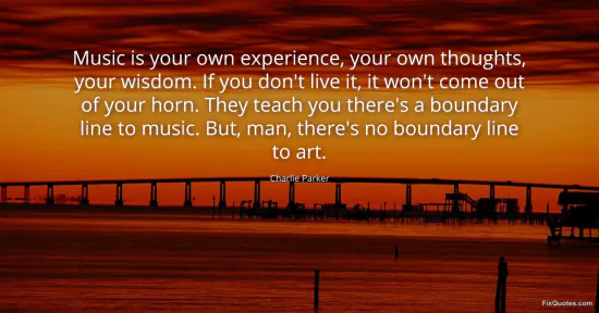 Parker, Charlie. (2026, January 15). Music is your own experience, your own thoughts, your wisdom. If you don't live it, it won't come out of your horn. They teach you there's a boundary line to music. But, man, there's no boundary line to art. FixQuotes. https://fixquotes.com/quotes/music-is-your-own-experience-your-own-thoughts-163201/