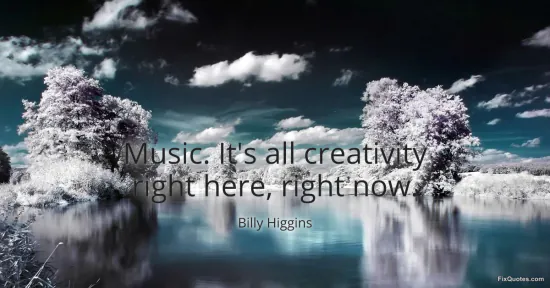 Higgins, Billy. (2026, January 16). Music. It's all creativity right here, right now. FixQuotes. https://fixquotes.com/quotes/music-its-all-creativity-right-here-right-now-109358/