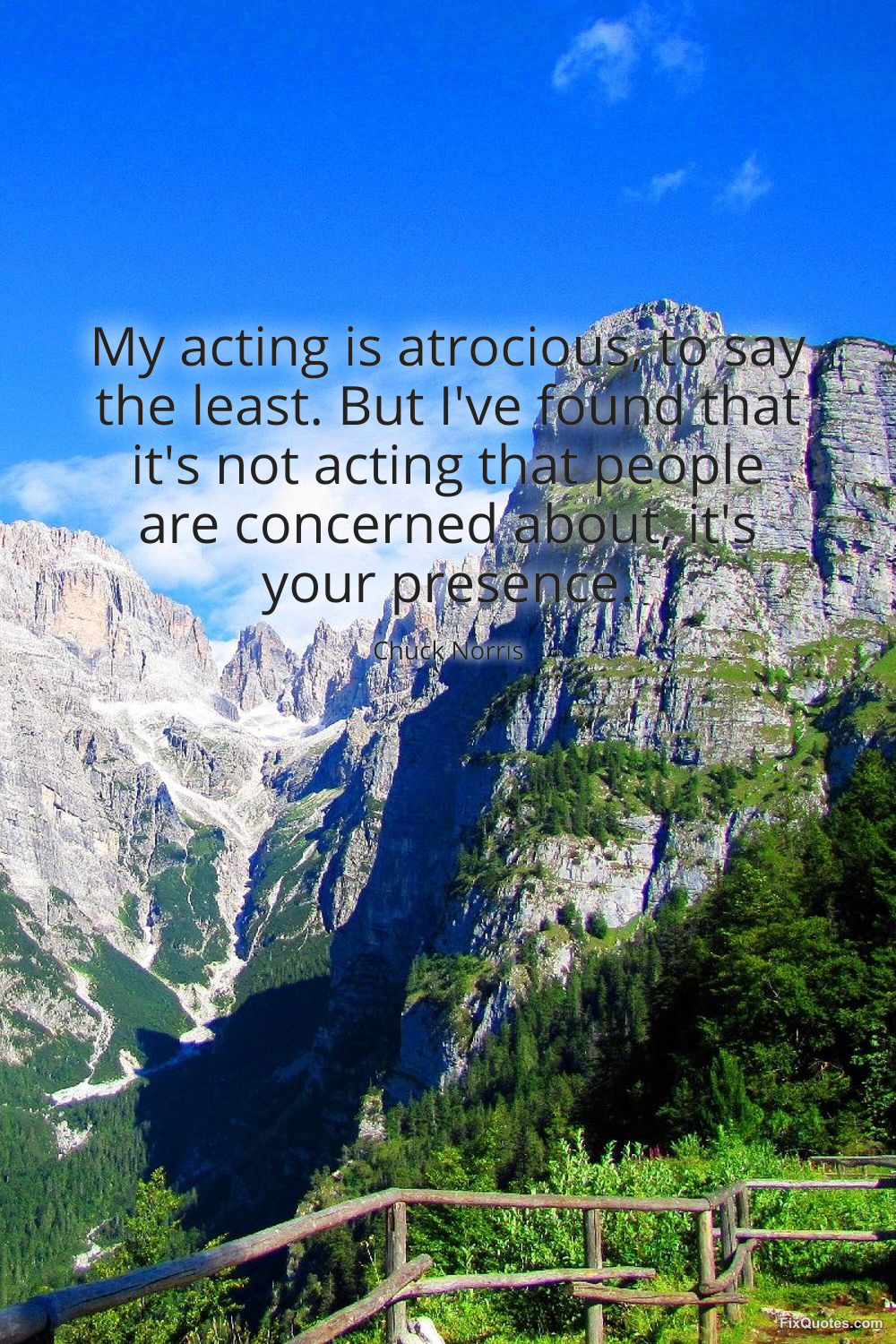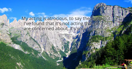 Norris, Chuck. (2026, March 20). My acting is atrocious, to say the least. But I've found that it's not acting that people are concerned about, it's your presence. FixQuotes. https://fixquotes.com/quotes/my-acting-is-atrocious-to-say-the-least-but-ive-186233/
