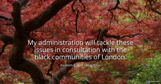 Livingstone, Kenneth Robert. (2026, January 15). My administration will tackle these issues in consultation with the black communities of London. FixQuotes. https://fixquotes.com/quotes/my-administration-will-tackle-these-issues-in-167924/