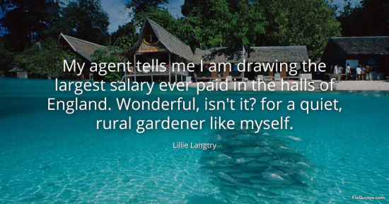 Langtry, Lillie. (2026, January 16). My agent tells me I am drawing the largest salary ever paid in the halls of England. Wonderful, isn't it? for a quiet, rural gardener like myself. FixQuotes. https://fixquotes.com/quotes/my-agent-tells-me-i-am-drawing-the-largest-salary-120433/