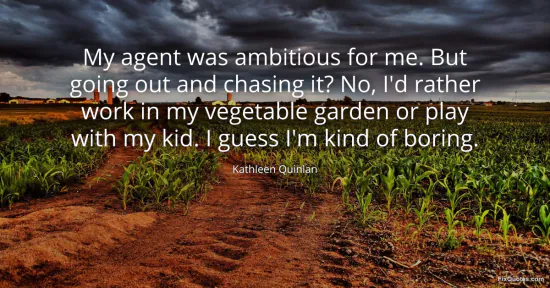 Quinlan, Kathleen. (2026, January 16). My agent was ambitious for me. But going out and chasing it? No, I'd rather work in my vegetable garden or play with my kid. I guess I'm kind of boring. FixQuotes. https://fixquotes.com/quotes/my-agent-was-ambitious-for-me-but-going-out-and-113843/