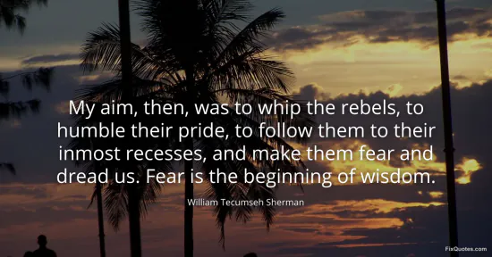 Sherman, William Tecumseh. "My aim, then, was to whip the rebels, to humble their pride, to follow them to their inmost recesses, and make them fear and dread us. Fear is the beginning of wisdom." FixQuotes. January 18, 2026. https://fixquotes.com/quotes/my-aim-then-was-to-whip-the-rebels-to-humble-12446/.