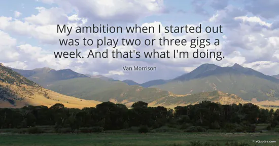Morrison, Van. "My ambition when I started out was to play two or three gigs a week. And that's what I'm doing." FixQuotes. January 16, 2026. https://fixquotes.com/quotes/my-ambition-when-i-started-out-was-to-play-two-or-91387/.