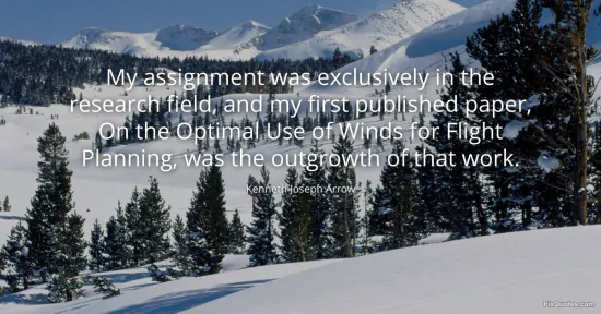 Arrow, Kenneth Joseph. (2026, January 16). My assignment was exclusively in the research field, and my first published paper, On the Optimal Use of Winds for Flight Planning, was the outgrowth of that work. FixQuotes. https://fixquotes.com/quotes/my-assignment-was-exclusively-in-the-research-99693/