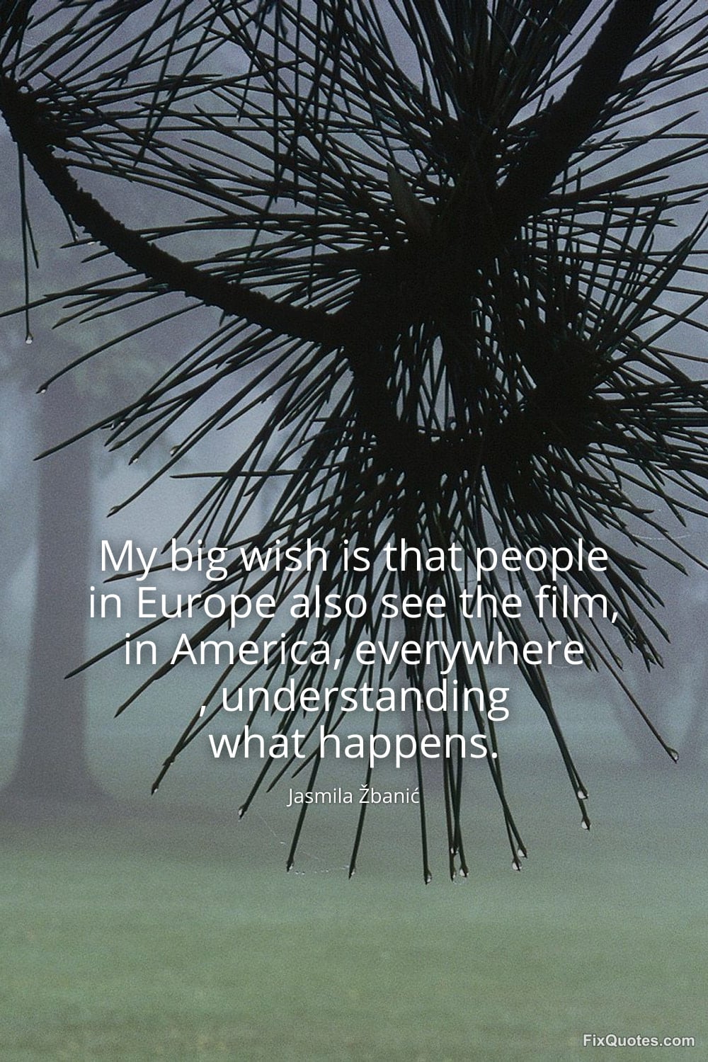 Žbanić, Jasmila. (2026, February 15). My big wish is that people in Europe also see the film, in America, everywhere , understanding what happens. FixQuotes. https://fixquotes.com/quotes/my-big-wish-is-that-people-in-europe-also-see-the-185399/