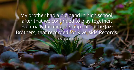 Mangione, Chuck. "My brother had a big band in high school; after that we continued to play together, eventually forming a group called the Jazz Brothers, that recorded for Riverside Records." FixQuotes. January 17, 2026. https://fixquotes.com/quotes/my-brother-had-a-big-band-in-high-school-after-73898/.