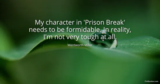 Miller, Wentworth. "My character in 'Prison Break' needs to be formidable. In reality, I'm not very tough at all." FixQuotes. January 18, 2026. https://fixquotes.com/quotes/my-character-in-prison-break-needs-to-be-17517/.