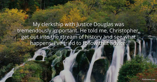 Christopher, Warren. "My clerkship with Justice Douglas was tremendously important. He told me, Christopher, get out into the stream of history and see what happens. I've tried to follow that advice." FixQuotes. January 18, 2026. https://fixquotes.com/quotes/my-clerkship-with-justice-douglas-was-5909/.