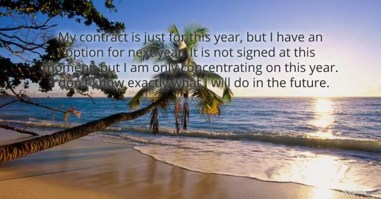 "My contract is just for this year, but I have an option for next year. It is not signed at this moment, but I am only concentrating on this year. I don't know exactly what I will do in the future." FixQuotes, 18 Jan. 2026, https://fixquotes.com/quotes/my-contract-is-just-for-this-year-but-i-have-an-11884/. Accessed 21 Feb. 2026.