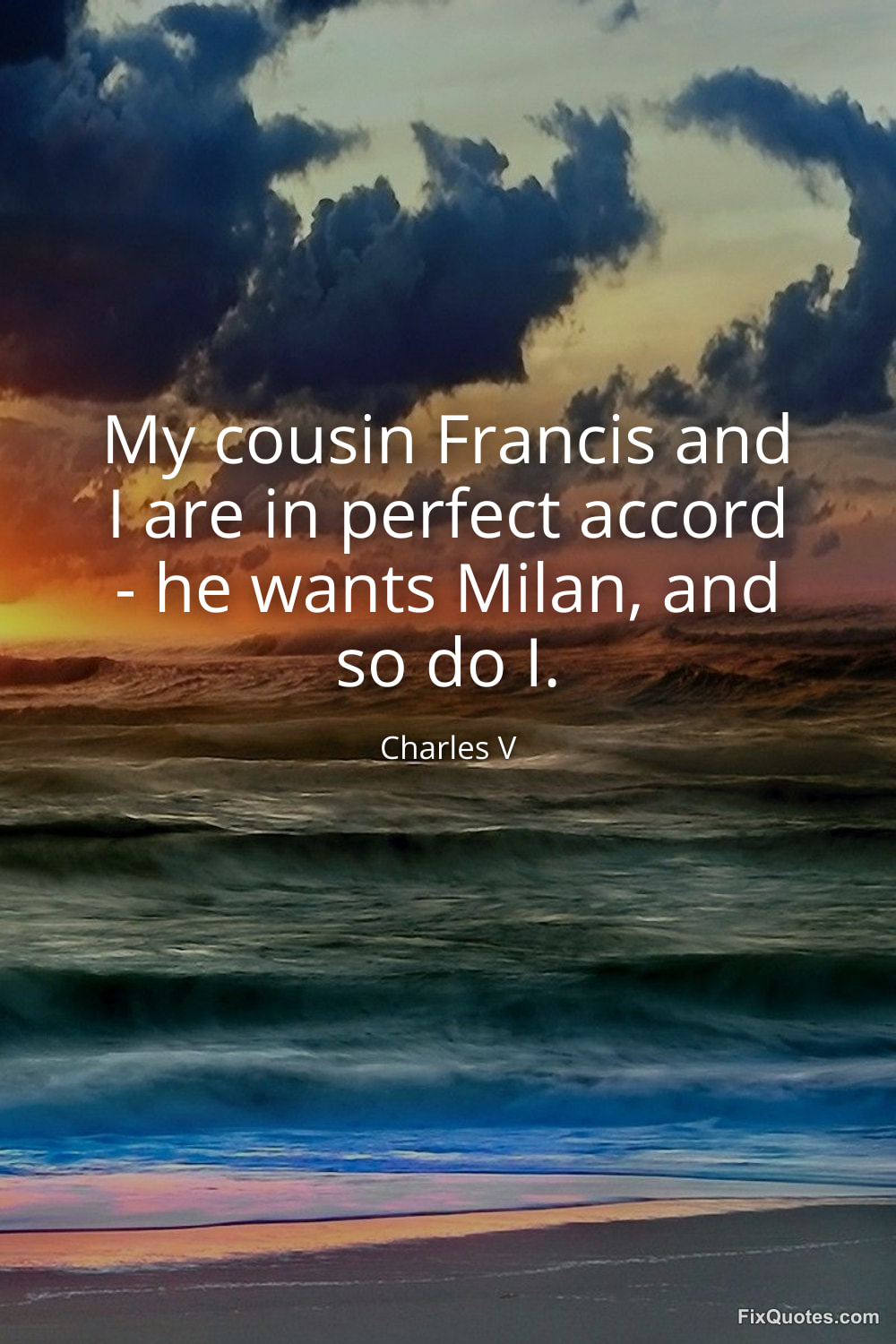 V, Charles. "My cousin Francis and I are in perfect accord - he wants Milan, and so do I." FixQuotes. January 15, 2026. https://fixquotes.com/quotes/my-cousin-francis-and-i-are-in-perfect-accord-150281/.