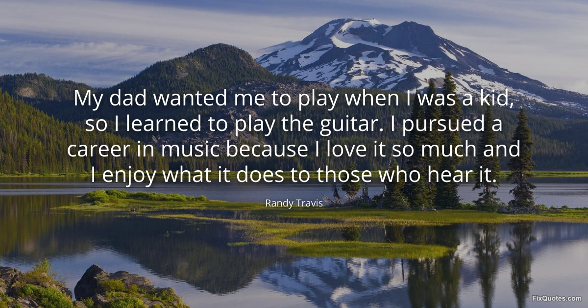 Travis, Randy. "My dad wanted me to play when I was a kid, so I learned to play the guitar. I pursued a career in music because I love it so much and I enjoy what it does to those who hear it." FixQuotes. January 16, 2026. https://fixquotes.com/quotes/my-dad-wanted-me-to-play-when-i-was-a-kid-so-i-124868/.