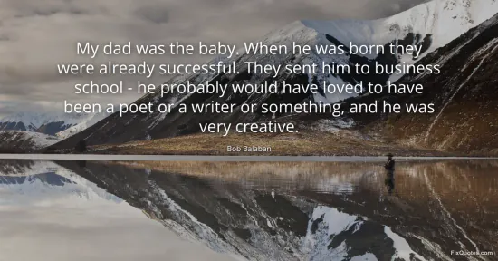 Balaban, Bob. (2026, January 17). My dad was the baby. When he was born they were already successful. They sent him to business school - he probably would have loved to have been a poet or a writer or something, and he was very creative. FixQuotes. https://fixquotes.com/quotes/my-dad-was-the-baby-when-he-was-born-they-were-38712/