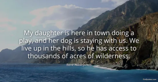 Auberjonois, Rene. (2026, January 16). My daughter is here in town doing a play, and her dog is staying with us. We live up in the hills, so he has access to thousands of acres of wilderness. FixQuotes. https://fixquotes.com/quotes/my-daughter-is-here-in-town-doing-a-play-and-her-107518/