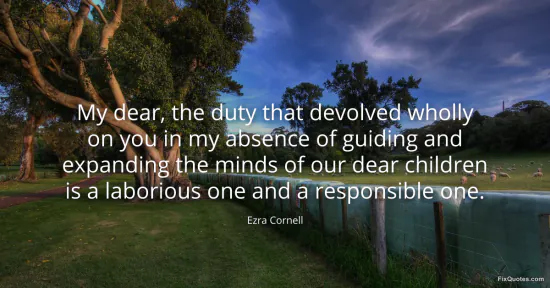 Cornell, Ezra. (2026, January 17). My dear, the duty that devolved wholly on you in my absence of guiding and expanding the minds of our dear children is a laborious one and a responsible one. FixQuotes. https://fixquotes.com/quotes/my-dear-the-duty-that-devolved-wholly-on-you-in-78834/