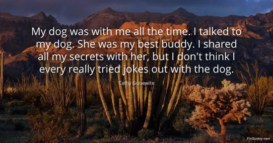 Guisewite, Cathy. "My dog was with me all the time. I talked to my dog. She was my best buddy. I shared all my secrets with her, but I don't think I every really tried jokes out with the dog." FixQuotes. January 18, 2026. https://fixquotes.com/quotes/my-dog-was-with-me-all-the-time-i-talked-to-my-5457/.