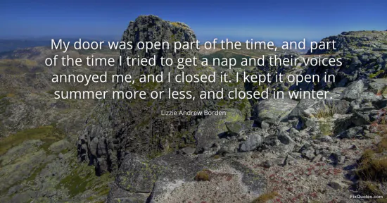 Borden, Lizzie Andrew. (2026, January 15). My door was open part of the time, and part of the time I tried to get a nap and their voices annoyed me, and I closed it. I kept it open in summer more or less, and closed in winter. FixQuotes. https://fixquotes.com/quotes/my-door-was-open-part-of-the-time-and-part-of-the-165387/