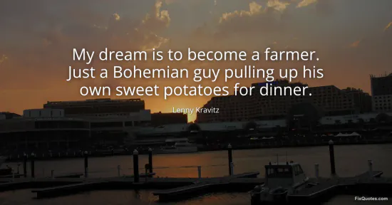 Kravitz, Lenny. "My dream is to become a farmer. Just a Bohemian guy pulling up his own sweet potatoes for dinner." FixQuotes. January 15, 2026. https://fixquotes.com/quotes/my-dream-is-to-become-a-farmer-just-a-bohemian-144353/.