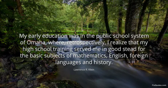 Klein, Lawrence R. (2026, January 16). My early education was in the public school system of Omaha, where, retrospectively, I realize that my high school training served me in good stead for the basic subjects of mathematics, English, foreign languages and history. FixQuotes. https://fixquotes.com/quotes/my-early-education-was-in-the-public-school-87099/