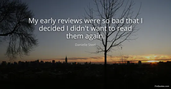 Steel, Danielle. "My early reviews were so bad that I decided I didn't want to read them again." FixQuotes. January 16, 2026. https://fixquotes.com/quotes/my-early-reviews-were-so-bad-that-i-decided-i-132208/.