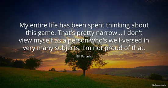 Parcells, Bill. "My entire life has been spent thinking about this game. That's pretty narrow... I don't view myself as a person who's well-versed in very many subjects. I'm not proud of that." FixQuotes. January 14, 2026. https://fixquotes.com/quotes/my-entire-life-has-been-spent-thinking-about-this-109350/.