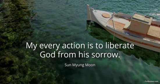 Moon, Sun Myung. "My every action is to liberate God from his sorrow." FixQuotes. January 16, 2026. https://fixquotes.com/quotes/my-every-action-is-to-liberate-god-from-his-sorrow-83863/.