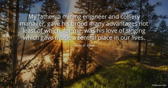 Black, James W. (2026, January 17). My father, a mining engineer and colliery manager, gave his brood many advantages not least of which, for me, was his love of singing which gave music a central place in our lives. FixQuotes. https://fixquotes.com/quotes/my-father-a-mining-engineer-and-colliery-manager-78411/