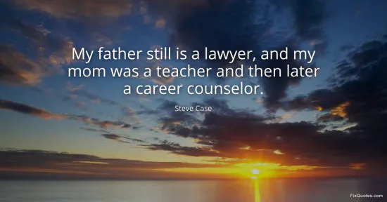 Case, Steve. (2026, January 16). My father still is a lawyer, and my mom was a teacher and then later a career counselor. FixQuotes. https://fixquotes.com/quotes/my-father-still-is-a-lawyer-and-my-mom-was-a-90688/