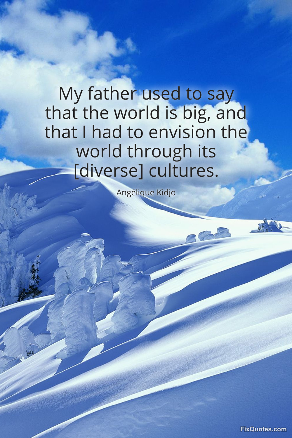 Kidjo, Angélique. "My father used to say that the world is big, and that I had to envision the world through its [diverse] cultures." FixQuotes. February 15, 2026. https://fixquotes.com/quotes/my-father-used-to-say-that-the-world-is-big-and-185383/.