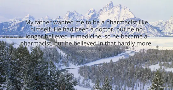 Chabrol, Claude. "My father wanted me to be a pharmacist like himself. He had been a doctor, but he no longer believed in medicine; so he became a pharmacist, but he believed in that hardly more." FixQuotes. January 17, 2026. https://fixquotes.com/quotes/my-father-wanted-me-to-be-a-pharmacist-like-54197/.