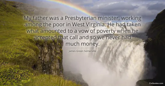Somerville, James Green. (2026, January 15). My father was a Presbyterian minister, working among the poor in West Virginia. He had taken what amounted to a vow of poverty when he accepted that call and so we never had much money. FixQuotes. https://fixquotes.com/quotes/my-father-was-a-presbyterian-minister-working-167658/