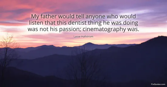 Hallstrom, Lasse. "My father would tell anyone who would listen that this dentist thing he was doing was not his passion; cinematography was." FixQuotes. January 15, 2026. https://fixquotes.com/quotes/my-father-would-tell-anyone-who-would-listen-that-157453/.