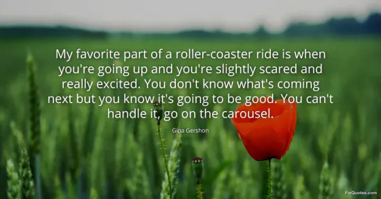 Gershon, Gina. (2026, January 17). My favorite part of a roller-coaster ride is when you're going up and you're slightly scared and really excited. You don't know what's coming next but you know it's going to be good. You can't handle it, go on the carousel. FixQuotes. https://fixquotes.com/quotes/my-favorite-part-of-a-roller-coaster-ride-is-when-54699/