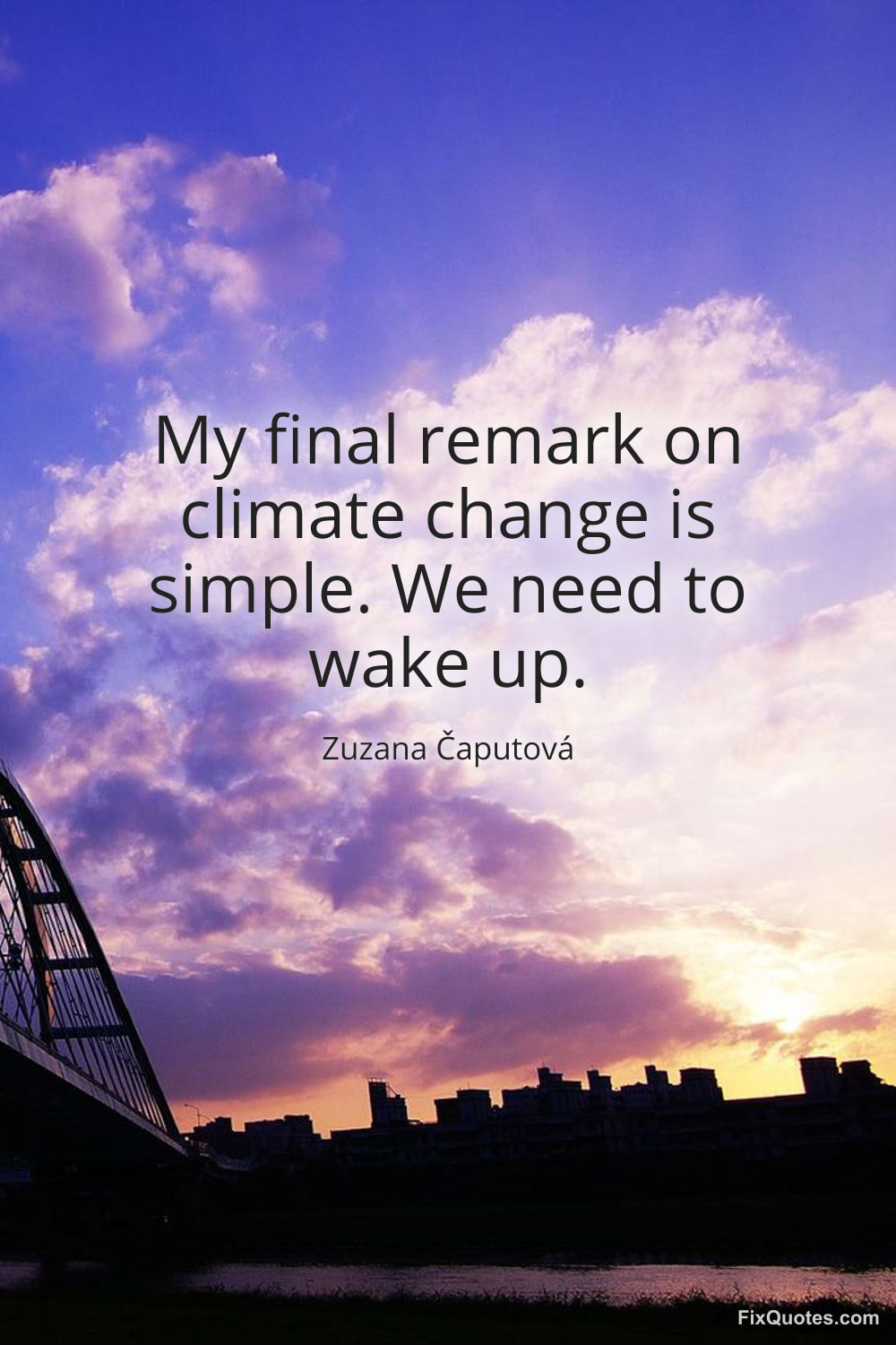 Caputova, Zuzana. "My final remark on climate change is simple. We need to wake up." FixQuotes. February 15, 2026. https://fixquotes.com/quotes/my-final-remark-on-climate-change-is-simple-we-185467/.