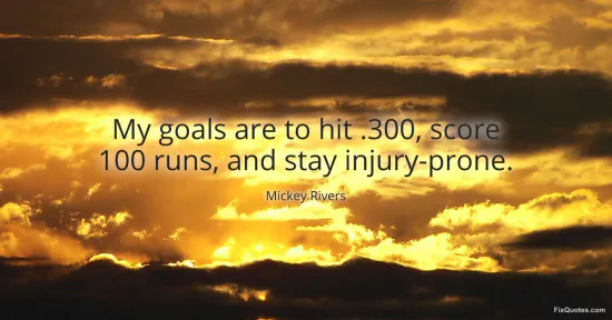 The joke lands because it’s built like a clean athlete’s mission statement and then torpedoes itself in the last three words. Mickey Rivers sets up the classic baseball-brain checklist - hit .300, score 100 runs - the kind of tidy, numeric ambition fans and front offices can nod along to. Then he swaps the expected third item (stay healthy) for its nightmare twin: “stay injury-prone.” It’s a comedian’s pivot disguised as clubhouse talk, and it works because it’s both absurd and uncomfortably plausible.