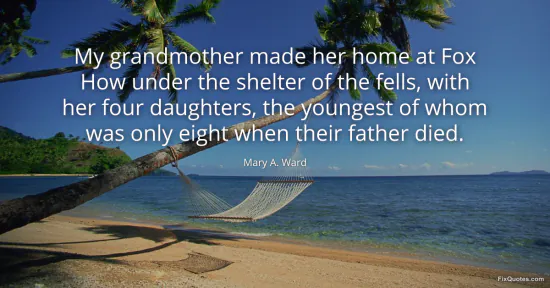 Ward, Mary A. (2026, January 17). My grandmother made her home at Fox How under the shelter of the fells, with her four daughters, the youngest of whom was only eight when their father died. FixQuotes. https://fixquotes.com/quotes/my-grandmother-made-her-home-at-fox-how-under-the-74623/