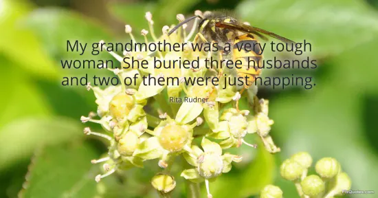 Rudner, Rita. "My grandmother was a very tough woman. She buried three husbands and two of them were just napping." FixQuotes. January 15, 2026. https://fixquotes.com/quotes/my-grandmother-was-a-very-tough-woman-she-buried-80665/.