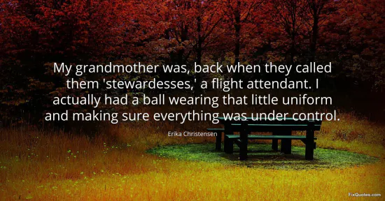 "My grandmother was, back when they called them 'stewardesses,' a flight attendant. I actually had a ball wearing that little uniform and making sure everything was under control"