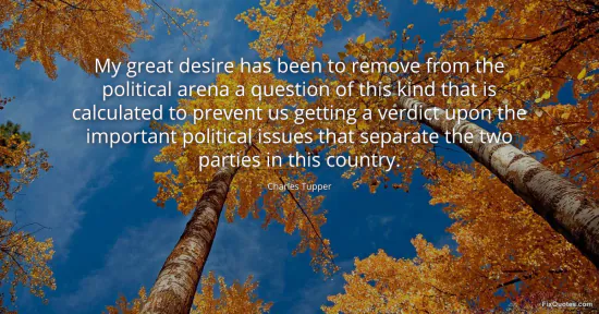 Tupper, Charles. (2026, January 15). My great desire has been to remove from the political arena a question of this kind that is calculated to prevent us getting a verdict upon the important political issues that separate the two parties in this country. FixQuotes. https://fixquotes.com/quotes/my-great-desire-has-been-to-remove-from-the-157976/