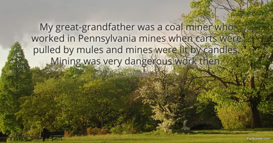 "My great-grandfather was a coal miner who worked in Pennsylvania mines when carts were pulled by mules and mines were lit by candles. Mining was very dangerous work then." FixQuotes, 16 Feb. 2026, https://fixquotes.com/quotes/my-great-grandfather-was-a-coal-miner-who-worked-160071/. Accessed 21 Feb. 2026.