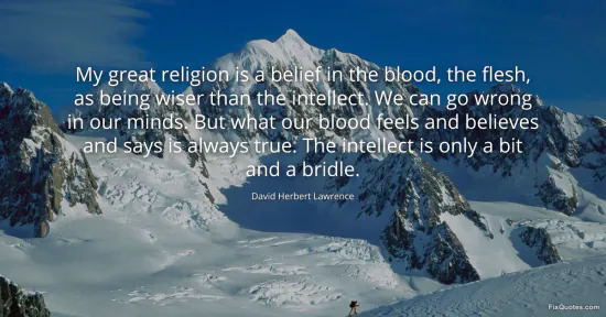 Lawrence, David Herbert. (2026, February 16). My great religion is a belief in the blood, the flesh, as being wiser than the intellect. We can go wrong in our minds. But what our blood feels and believes and says is always true. The intellect is only a bit and a bridle. FixQuotes. https://fixquotes.com/quotes/my-great-religion-is-a-belief-in-the-blood-the-33162/
