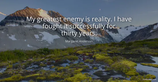 Anderson, Margaret. (2026, January 17). My greatest enemy is reality. I have fought it successfully for thirty years. FixQuotes. https://fixquotes.com/quotes/my-greatest-enemy-is-reality-i-have-fought-it-55082/